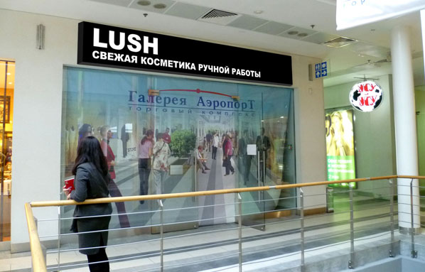 Компания «LUSH - свежая косметика ручной работы», заключила в 2010 г. с нами долгосрочный договор на оформление вновь открываемых магазинов в торговых центрах в Москвы и МО. В рамках этого договора уже около 20 магазинов привлекают покупателей красочной наружной и интерьерной рекламой, изготовленной нашей компанией.