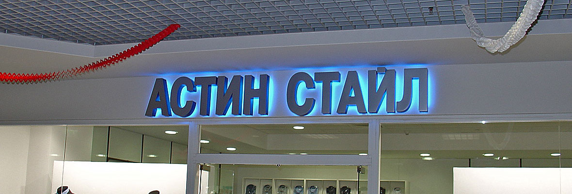 Изготовление и монтаж объемных световых букв для магазина одежды «Астин Стайл» в ТЦ «Метро Маркет» на м. Сокол.